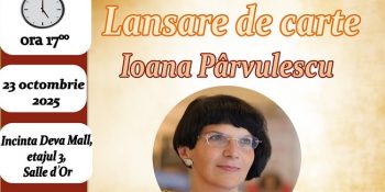 Vă reamintim că mai e puțin până la o întâlnire așteptată cu nerăbdare de voi: săptămâna viitoare, joi, vom avea plăcerea de a ne întâlni cu una dintre cele mai îndrăgite scriitoare contemporane, doamna Ioana Pârvulescu, care își va lansa la Salonul Hunedorean al Cărții două dintre cele mai recente volume ale sale. Vă așteptăm cu mare drag să fiți alături de noi la acest eveniment de suflet! Biblioteca Județeană Hunedoara – Deva