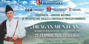 Primăria Municipiului Deva anunță organizarea, în perioada 23–24 aprilie 2026, a celei de-a XIII-a ediții a Festivalului-Concurs Național de Interpretare Vocală a Cântecului Popular Românesc „Drăgan Muntean”, un eveniment de prestigiu dedicat valorilor autentice ale folclorului românesc și memoriei marelui interpret Drăgan Muntean. Evenimentul este organizat de Consiliul Județean Hunedoara, prin Centrul de Cultură și Artă, în parteneriat cu Primăria Municipiului Deva, prin Centrul Cultural „Drăgan Muntean”. Timp de două zile, municipiul Deva va găzdui acest eveniment, reunind pe scenă tineri interpreți talentați și artiști consacrați ai muzicii populare românești,Mai mult
