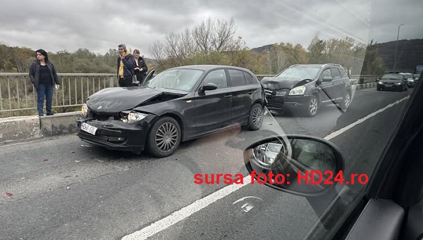 Un accident rutier s-a produs astăzi pe podul Șoimuș, la ieșirea din Deva. Trei autoturisme s-au ciocnit, iar circulația se desfășoară pe o singură bandă.