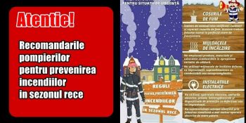 În vederea prevenirii situațiilor de urgență specifice sezonului de iarnă și pe fondul creșterii semnificative, în ultima perioadă, a numărului de incendii la gospodăriile cetățenești, generate de utilizarea necorespunzătoare a sistemelor de încălzire, se impun populației următoarele măsuri: În cazul utilizării sobelor cu acumulare de căldură – înainte de utilizare, sobele şi coşurile de evacuare a fumului şi gazelor arse vor fi verificate amănunţit, reparate şi curăţate; – în faţa uşiţei de alimentare, pardoseala combustibilă se protejează cu o bucată de tablă cu dimensiunile de 70 x 50 cm; –Mai mult