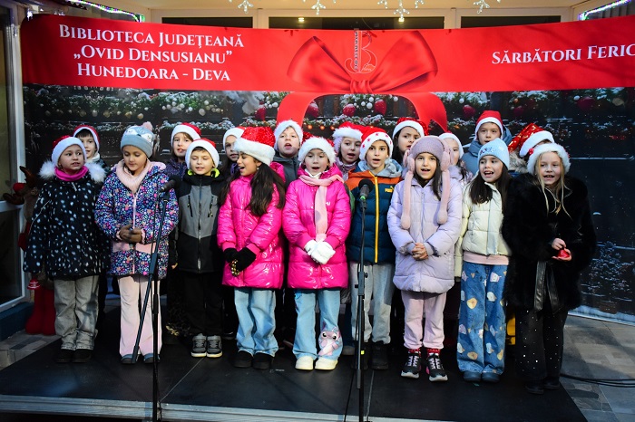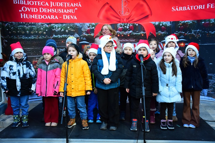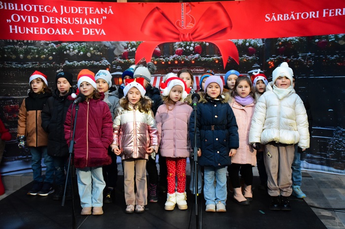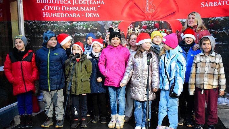 Curtea bibliotecii devine, an de an, un atelier pe care l-am conceput în parteneriat cu Colegiul Național „Decebal” din Deva și cu sprijinul Consiliului Județean Hunedoara, un spațiu special amenajat în care, pe zeci de standuri, vreme de două zile, elevii claselor pregătitoare și ai claselor I-VII oferă spre vânzare rodul creației lor pline de imaginație și iscusință: ornamente și decorațiuni de Crăciun confecționate din lemn, hârtie, materii textile sau plastice, piatră, sticlă. Pot fi văzuți îngerași delicați, globuri, clopoței, steluțe, oameni de zăpadă, reni, baghete magice, brăduți de diferite forme, mici tablouri, cusături artistice cu motive populare, toate ieșite din mâinile pricepute ale micilor artiști. Încă de la intrarea în curtea bibliotecii, se simte atmosfera de sărbătoare, se aud glasuri și râsete de copii, totul pare a fi un stup de albine harnice și neobosite, gata să ofere celor prezenți un strop de bucurie. Pentru acești copii, dar și pentru noi, așteptarea sărbătorilor pare un vis devenit realitate și bucuria ce pune stăpânire pe toți este nota dominantă a acestor zile de decembrie.