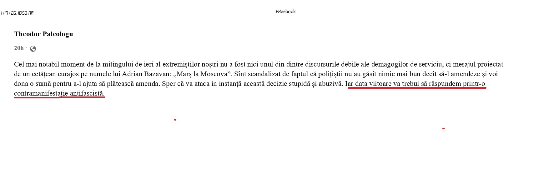 Delir marca Paleologu: “Data viitoare va trebui să răspundem printr-o contramanifestație antifascistă”