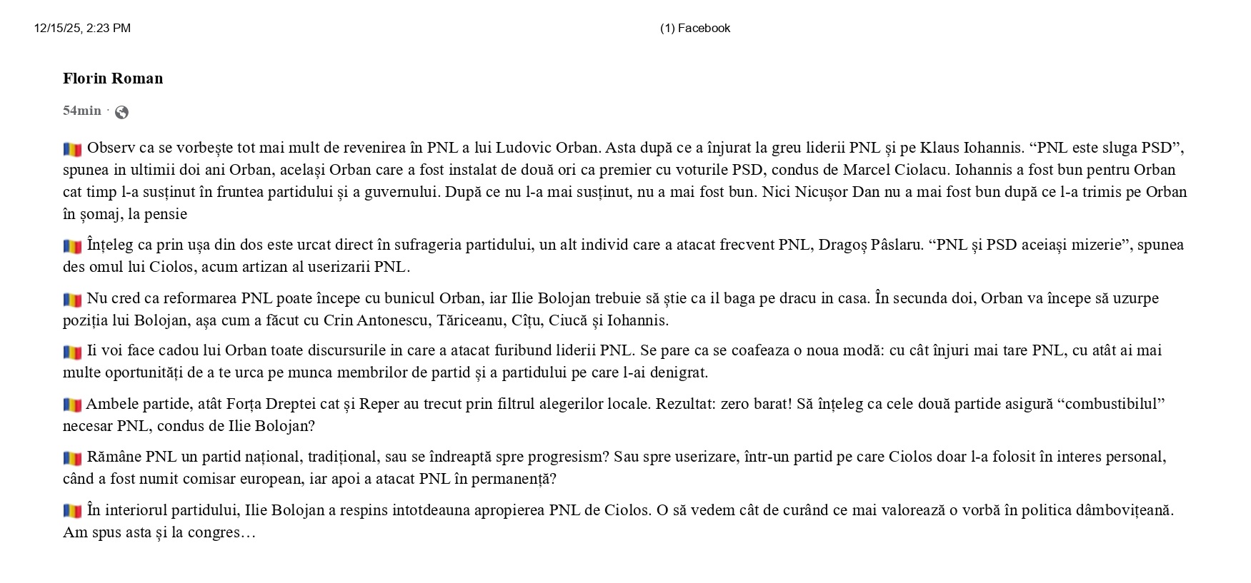 “Observ ca se vorbește tot mai mult de revenirea în PNL a lui Ludovic Orban. Asta după ce a înjurat la greu liderii PNL și pe Klaus Iohannis. “PNL este sluga PSD”, spunea in ultimii doi ani Orban, același Orban care a fost instalat de două ori ca premier cu voturile PSD, condus de Marcel Ciolacu. Iohannis a fost bun pentru Orban cat timp l-a susținut în fruntea partidului și a guvernului. După ce nu l-a mai susținut, nu a mai fost bun. Nici Nicușor Dan nu a mai fost bun după ce l-a trimis pe Orban în șomaj, la pensie”, a subliniat Roman într-o postare pe pagina de socializare.