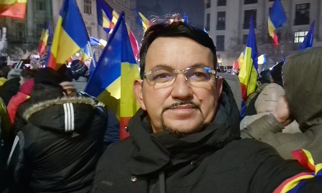 Emanuel Clej, consilier local AUR Deva, mesaj din mijlocul protestatarilor : Bună seara, Deva! Bună seara, România!