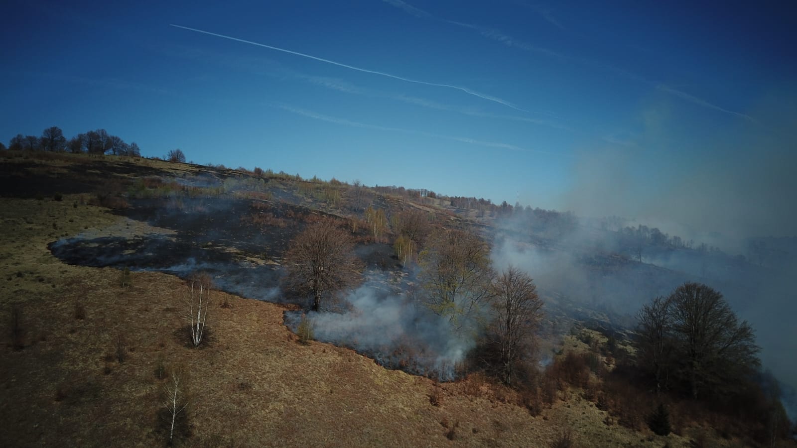 ISU Hunedoara| Incendiu de vegetație uscată în zona înaltă a comunelor Bunila și Lunca Cernii (video)