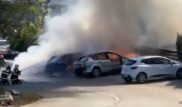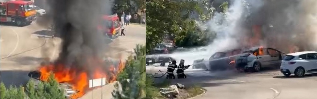 Echipaje de stingere ale Detașamentului de pompieri Hunedoara au intervenit, în această după amiază, pentru lichidarea unui incendiu care s-a produs la un autoturism aflat într-o parcare din municipiul Hunedoara, zona Castelului Corvinilor. Flăcările au afectat alte două autoturisme aflate în aceeași parcare în imediata apropiere a autovehiculului de la care s-au declanșat flăcările.