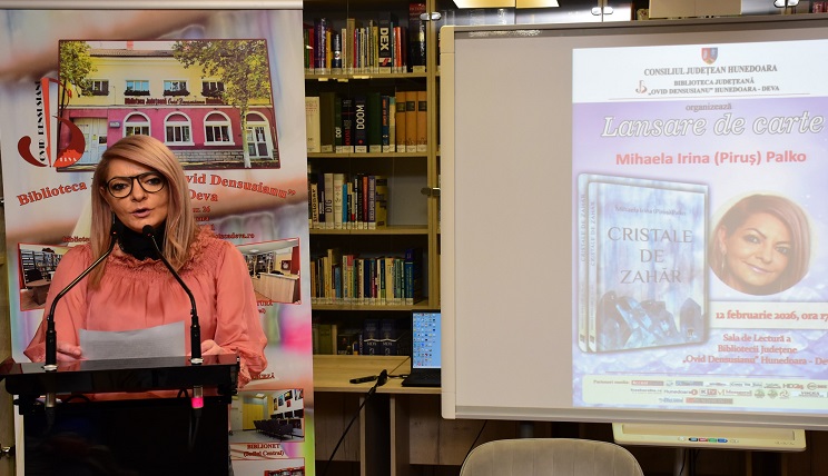 Biblioteca Județeană „Ovid Densusianu” Hunedoara – Deva, cu sprijinul Consiliului Județean Hunedoara, a organizat în luna februarie 2026, la Sala de Lectură, o întâlnire pusă sub semnul poeziei, al atmosferei pline de lirism: după volumul de debut, din anul 2019, intitulat „Am alergat și-am stat în gândul meu”, Mihaela Irina (Piruș) Palko a venit în fața cititorilor cu volumul „Cristale de zahăr”, ce cuprinde versuri și proză. Volumul pune în lumină pasiunea pentru literatură a autoarei, o pasiune născută încă din copilărie.