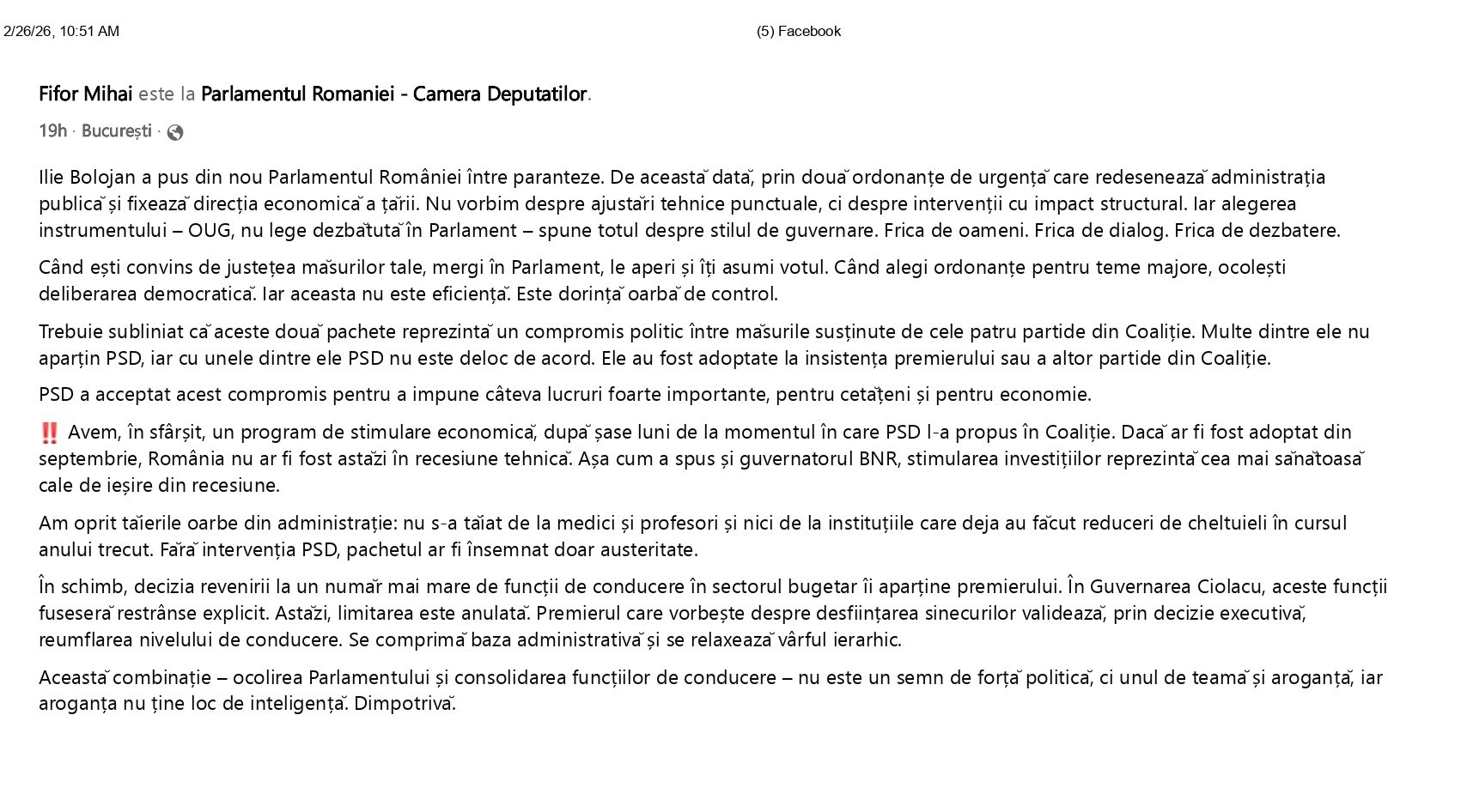 Deputaul PSD, Mihai Fifor deplânge situația în care a ajuns Parlamentul României, critică lipsa de dialog a premierului și lipsa de dezbatere parlamentară, dar spune că PSD-ul este de acord cu o astfel de abordare. Evident, totul în favoarea cetățenilor pentru care deputatul Mihai Fifor spune că se luptă până la capăt.