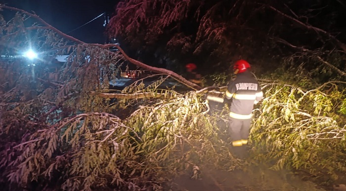 Echipaje de intervenție ale ISU Hunedoara au acționat, seara trecută și în această noapte, pentru degajarea copacilor care au căzut pe partea carosabilă de pe drumurile naționale și județene din zonele afectate de condițiile atmosferice periculoase.