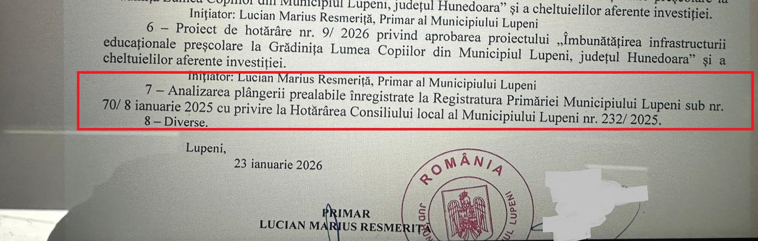 Vă invit să participați în număr cât mai mare la ședința Consiliului Local pentru a vă exprima opinia și pentru a arăta că Lupeniul are cetățeni implicați, nu doar spectatori”, a tranmis Silveșan pe pagina de socializare