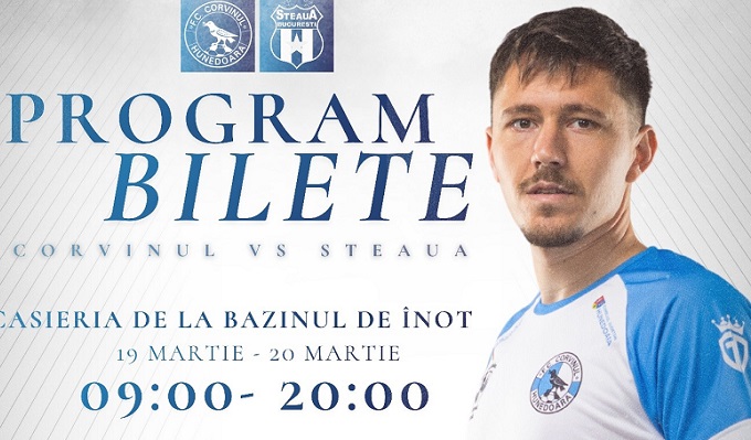 S-au pus în vânzare biletele pentru partida Corvinul Hunedoara – Steaua București