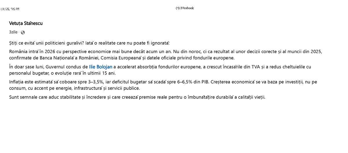 ” În doar șase luni, Guvernul condus de Ilie Bolojan a accelerat absorbția fondurilor europene, a crescut încasările din TVA și a redus cheltuielile cu personalul bugetar, o evoluție rară în ultimii 15 ani”, a menționat deputatul liberal în postare.